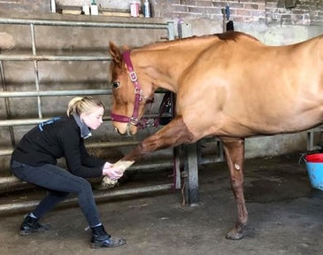 Stretching should only ever be performed on warm muscles following exercise, massage or application of a heat pack. Please ensure that you only stretch your horse or dog following a veterinary physiotherapists advice and demonstration, as each animals' ability to perform a certain stretch will depend on a number of factors.